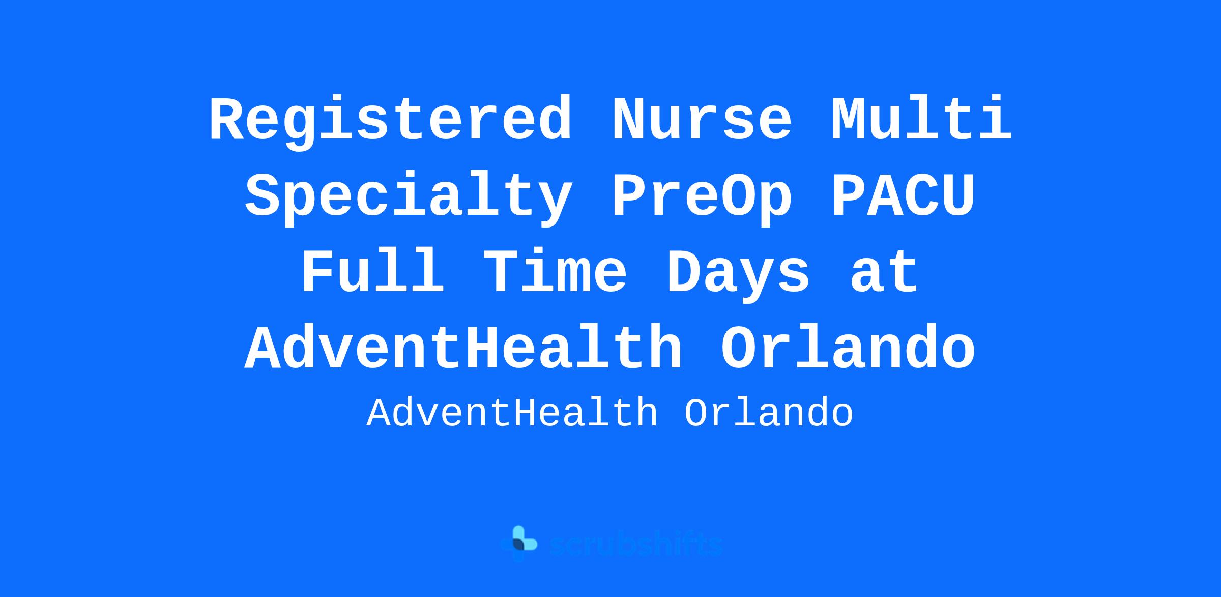 Registered Nurse Multi Specialty PreOp PACU Full Time Days at AdventHealth Orlando