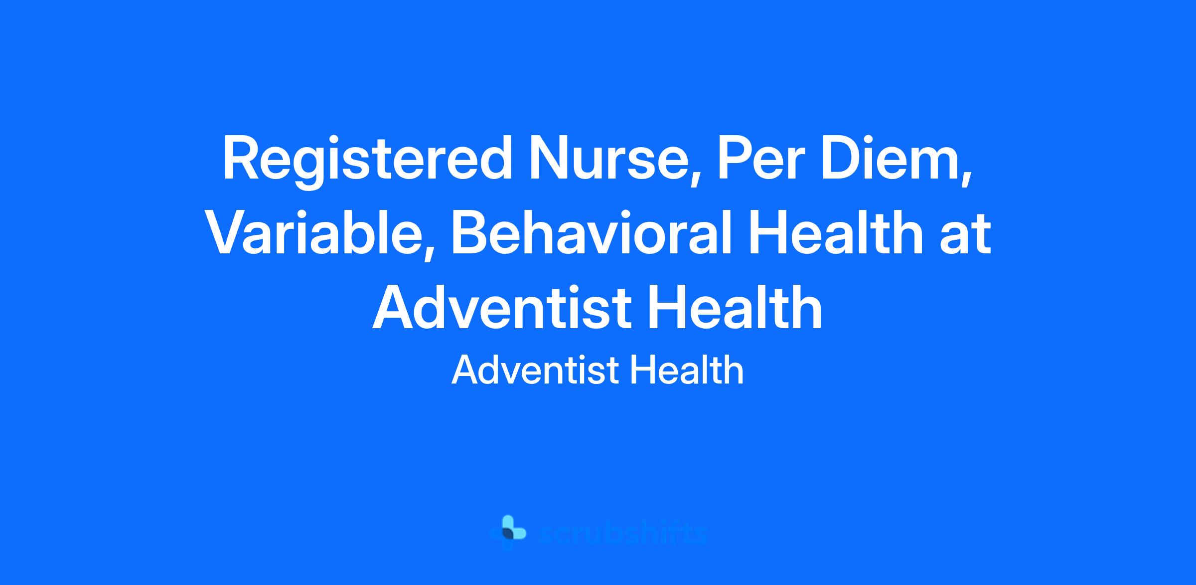 Registered Nurse, Per Diem, Variable, Behavioral Health at Adventist Health