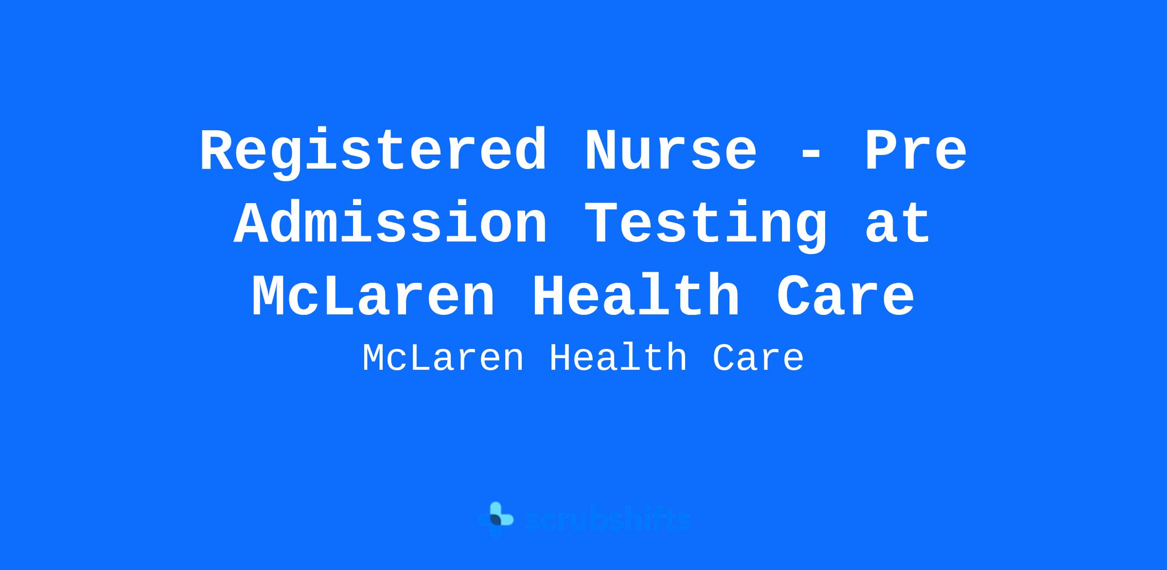 ๐ Apply Direct: https://careers.mclaren.org/jobs/registered-nurse-pre-admission-testing-31114