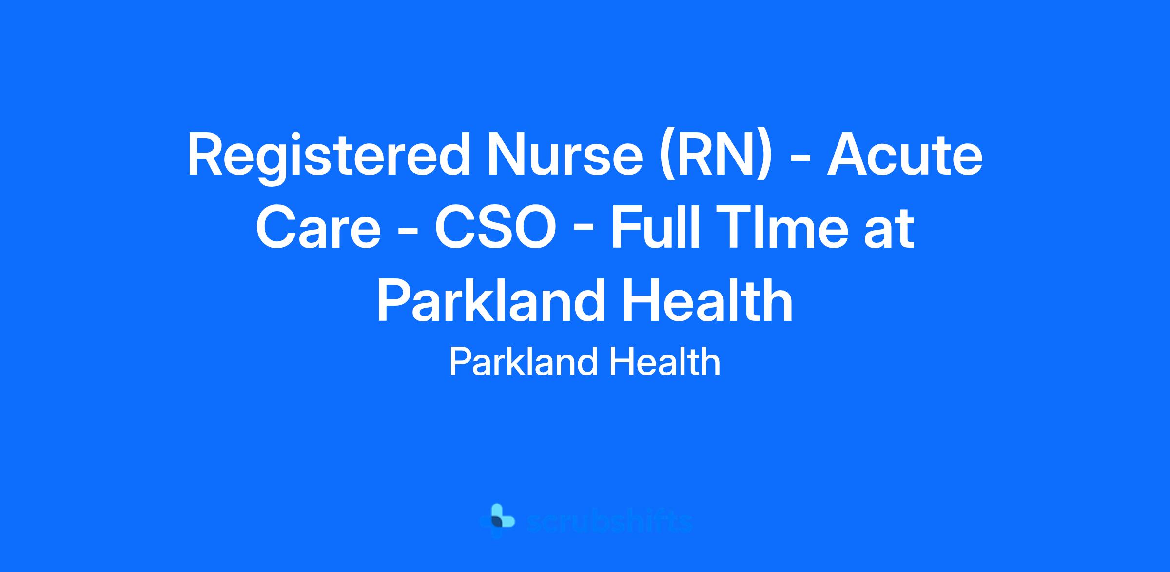Registered Nurse (RN) - Acute Care - CSO - Full TIme at Parkland Health