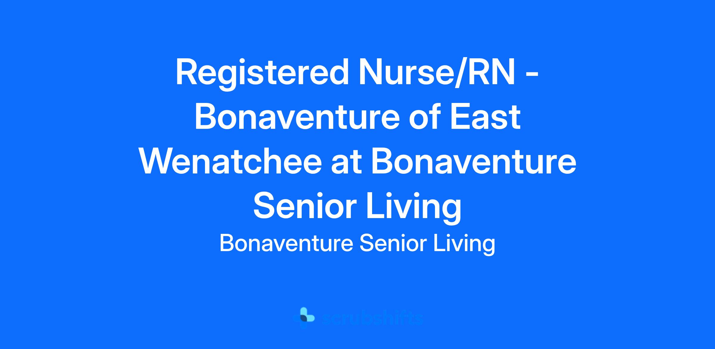 Bonaventure of East Wenatchee is seeking an experienced registered nurse to join our senior living community. This role focuses on providing quality health care, mentoring and training team members, and ensuring residentsโ well\\-being. We offer competitive pay, great benefits, and an environment that supports your success. If you are passionate about making a difference, we want to hear from you!