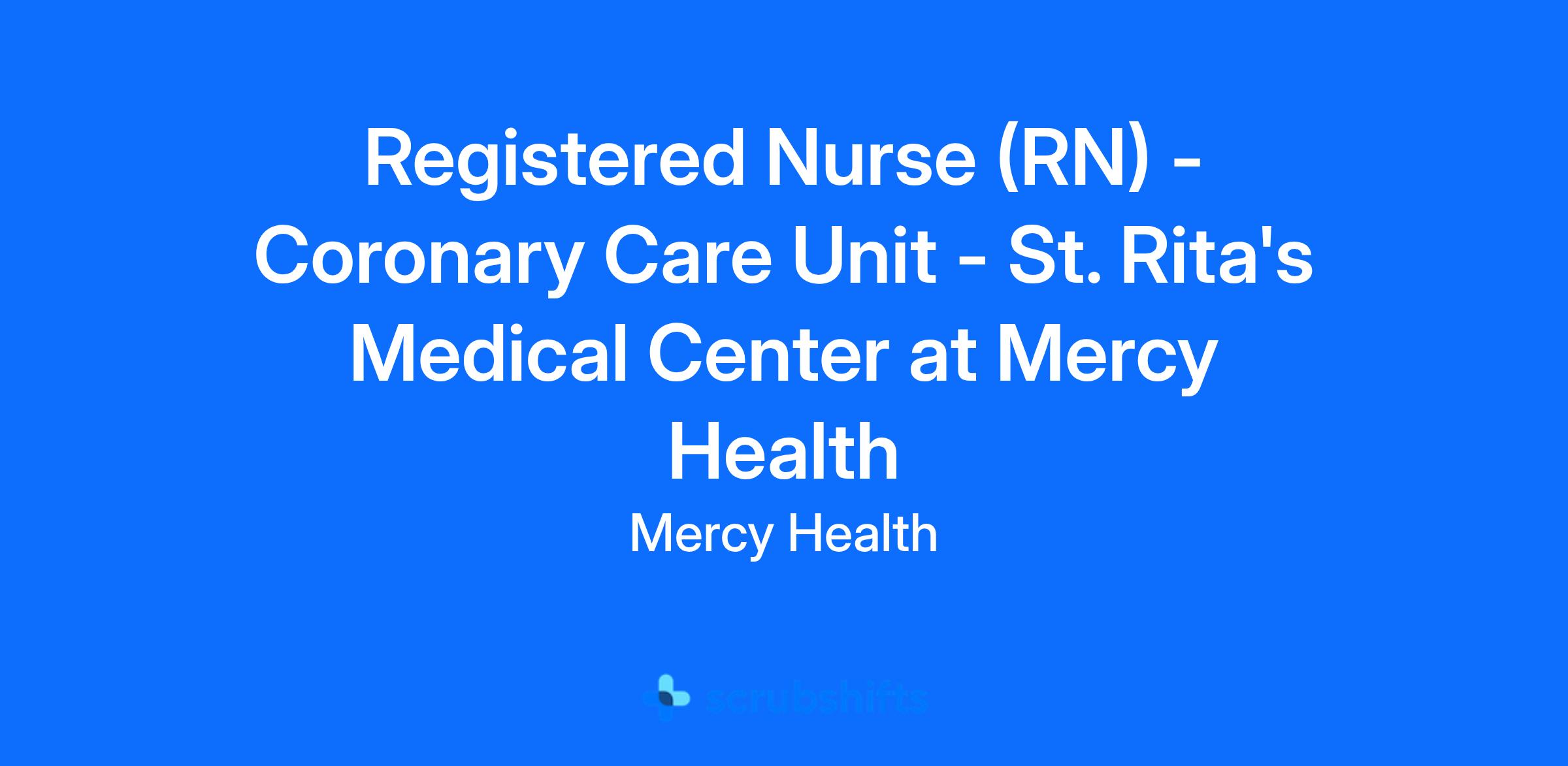 Registered Nurse (RN) - Coronary Care Unit - St. Rita's Medical Center at Mercy Health
