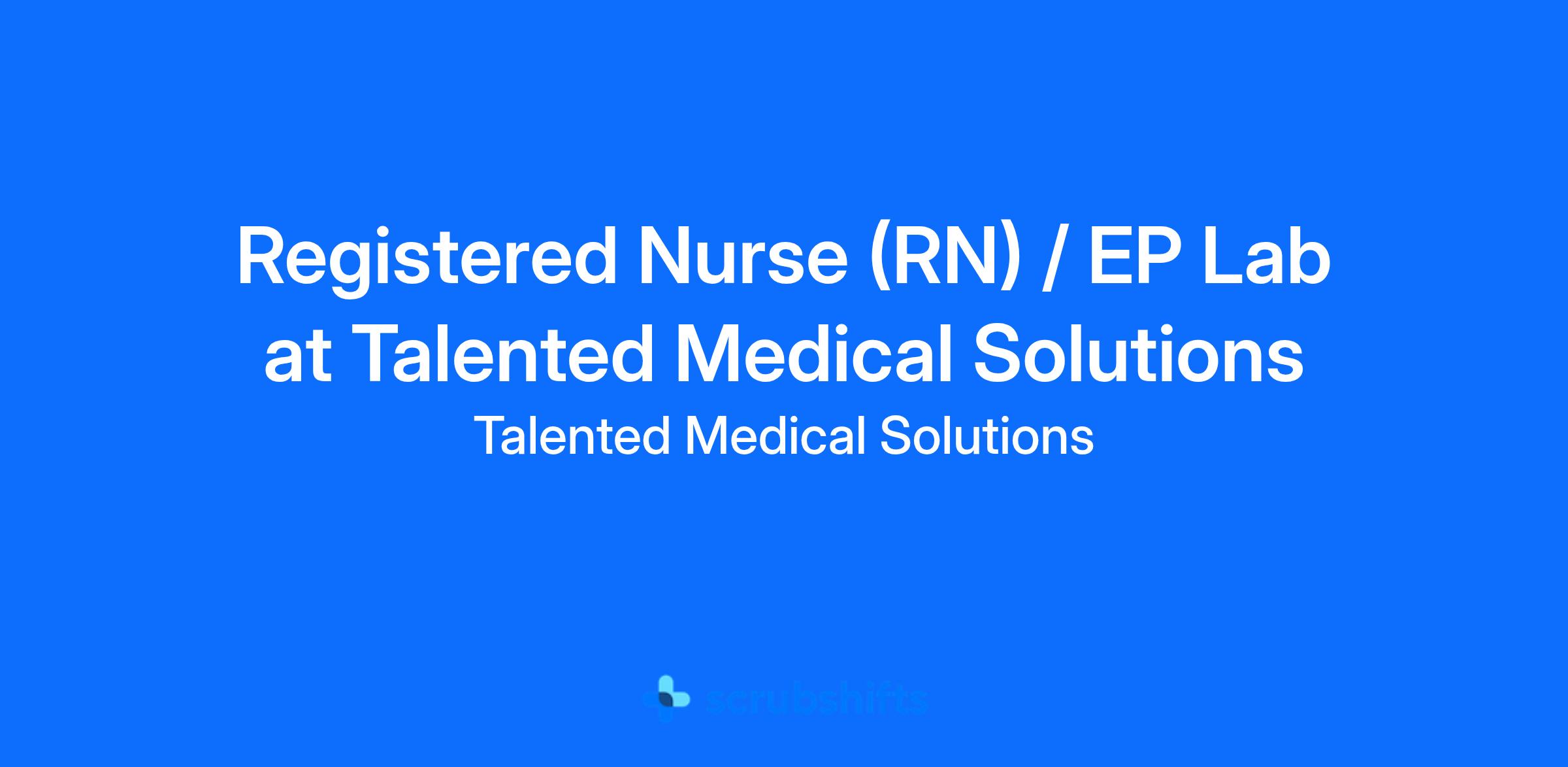 Hospital is seeking an experienced **Registered Nurse (RN)** to join the Electrophysiology (EP) Lab team. This is an exciting opportunity for a highly skilled nurse to contribute to a specialized department, ensuring safe and efficient patient care in a fast\\-paced environment.