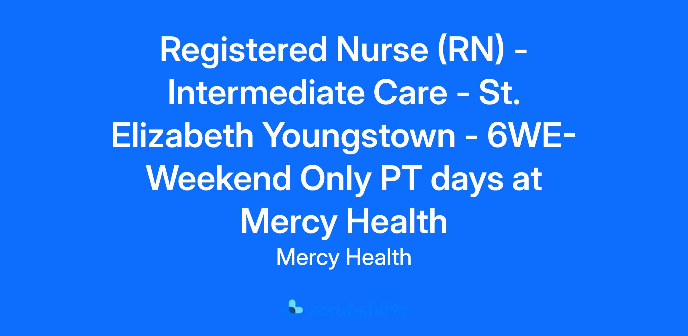 π Apply Direct: https://careers.mercy.com/us/en/job/BSMMHPUSR255231EXTERNALENUS/Registered-Nurse-RN-Intermediate-Care-St-Elizabeth-Youngstown-6WE-Weekend-Only-PT-days?utm_source=indeed&utm_medium=phenom-feeds