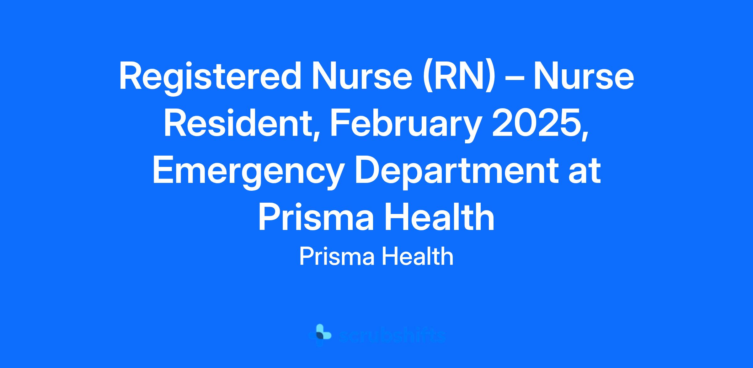 Registered Nurse (RN) β Nurse Resident, February 2025, Emergency Department at Prisma Health