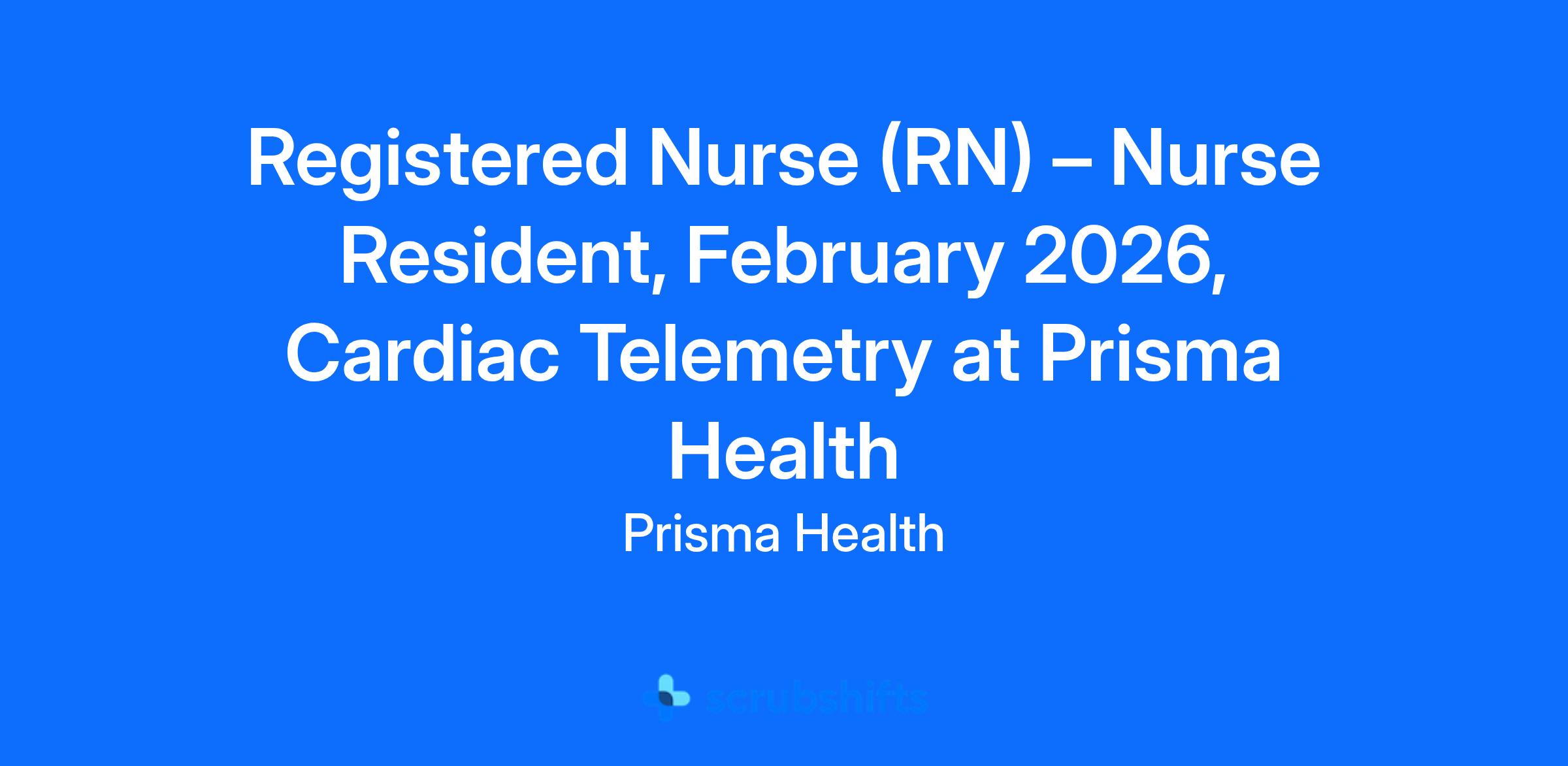 Registered Nurse (RN) β Nurse Resident, February 2026, Cardiac Telemetry at Prisma Health