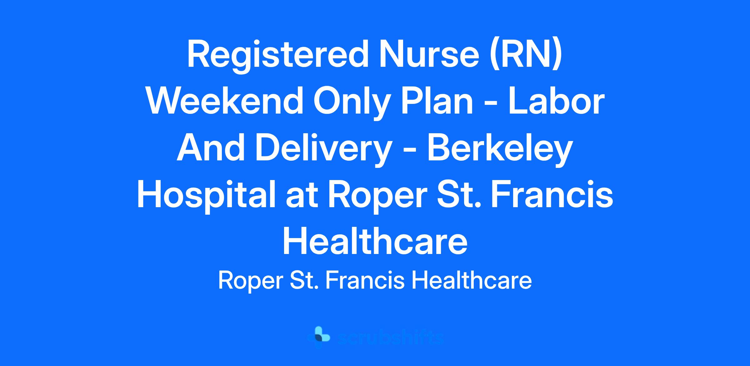 Registered Nurse (RN) Weekend Only Plan - Labor And Delivery - Berkeley Hospital at Roper St. Francis Healthcare