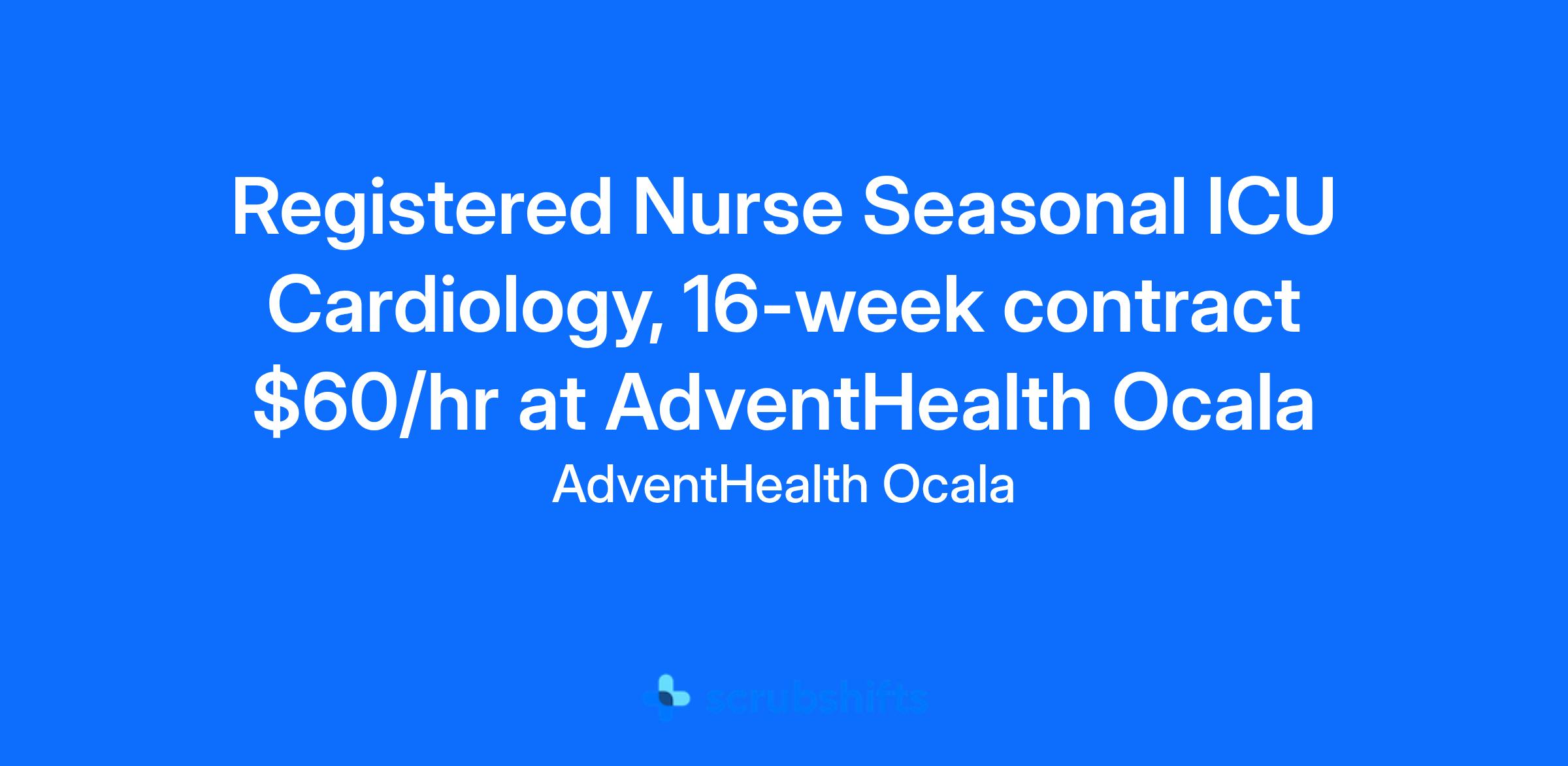 Registered Nurse Seasonal ICU Cardiology, 16-week contract $60/hr at AdventHealth Ocala