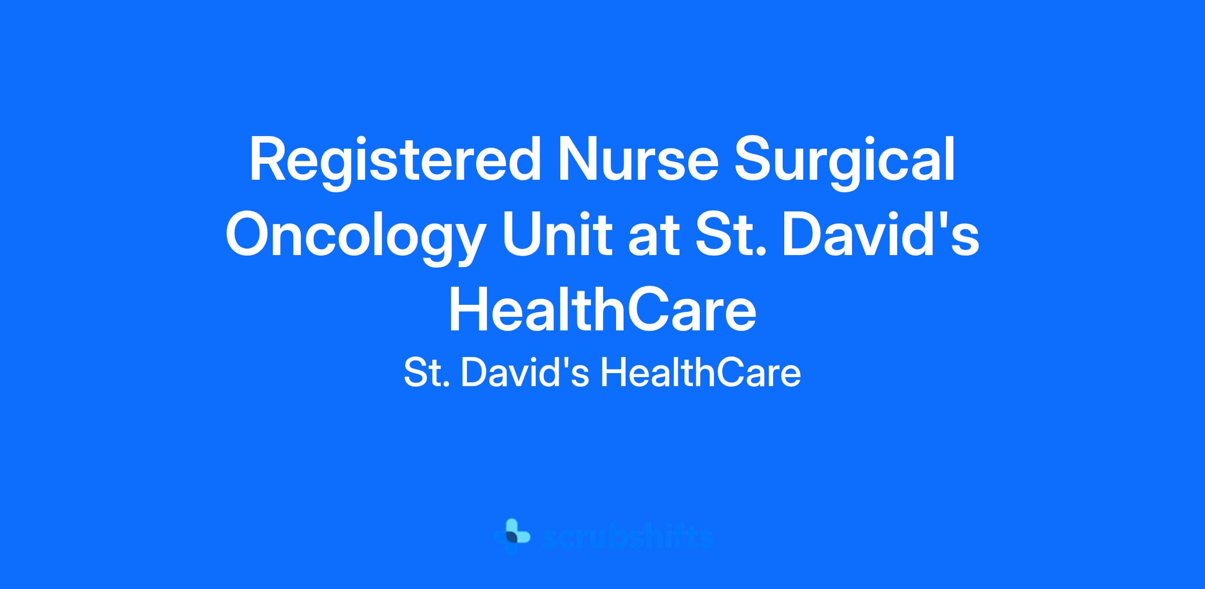 St. David's Medical Center is committed to investing in the latest technology enabling nurses to work more efficiently. **Are you passionate about delivering patient\\-centered care?** Submit your application for Surgical Oncology Unit Registered Nurse position and spend more time at the bedside with the patient.