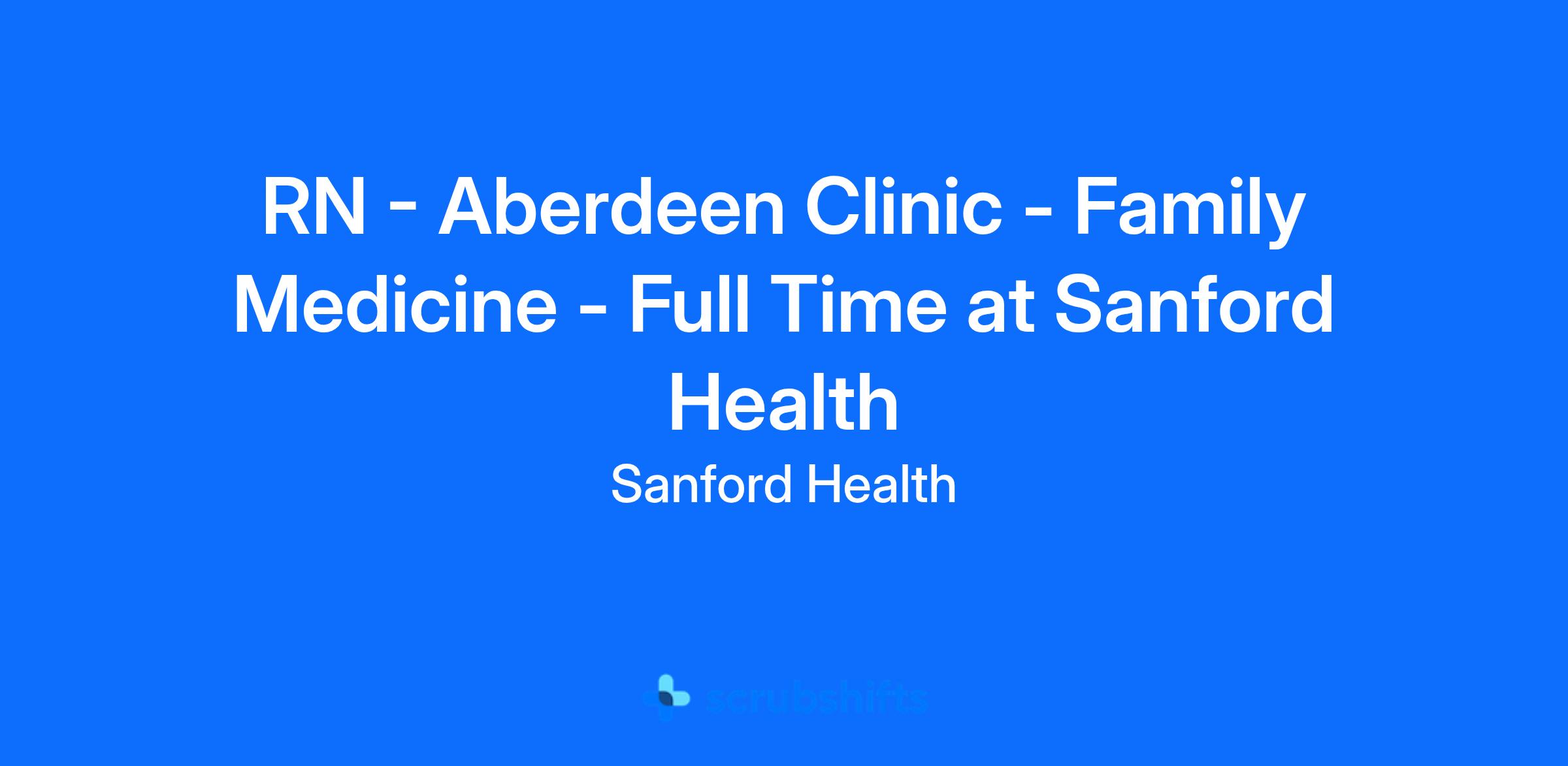 RN - Aberdeen Clinic - Family Medicine - Full Time at Sanford Health