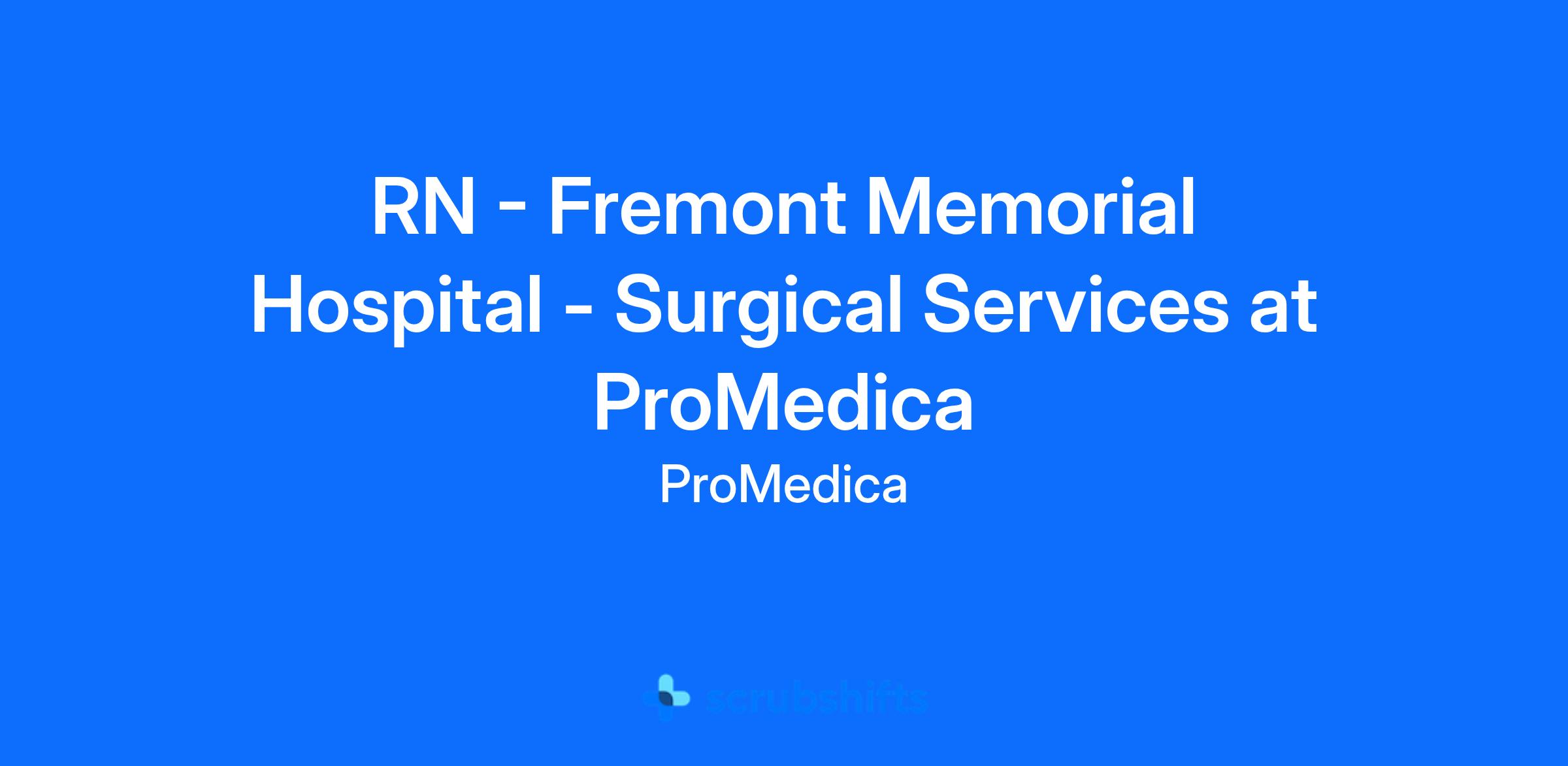 RN - Fremont Memorial Hospital - Surgical Services at ProMedica
