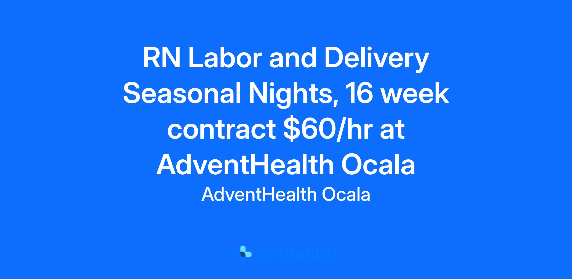 RN Labor and Delivery Seasonal Nights, 16 week contract $60/hr at AdventHealth Ocala