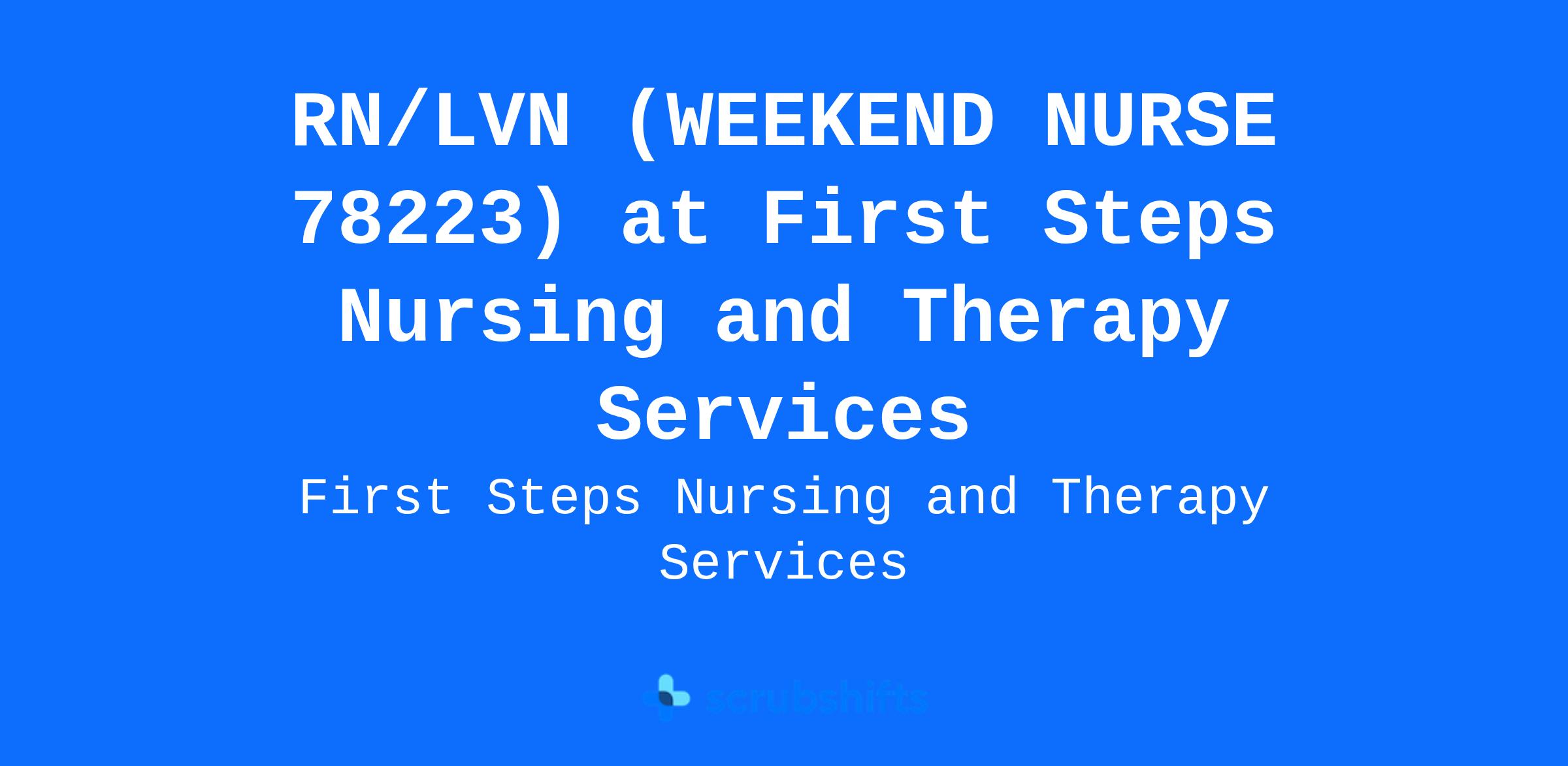 If you are looking for a rewarding career, a competitive salary, a management that truly cares about you, and a workplace where you can continue to learn and grow, come apply with First Steps Nursing and Therapy now! We have an immediate opportunity for Registered Nurses or Licensed Vocational Nurses with recent Private Duty Nursing Home Health experience. Full Time and Part time positions available.