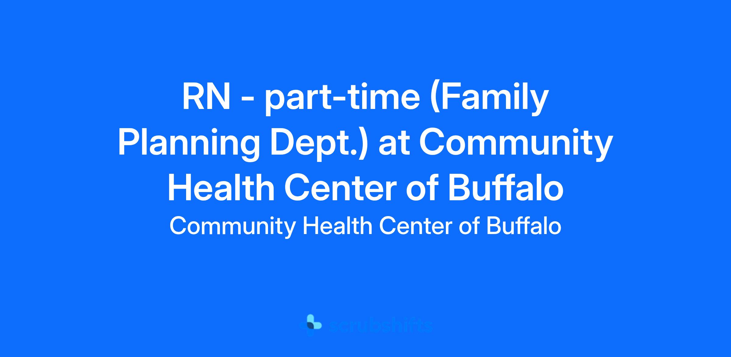 The Community Health Center of Buffalo (CHCB) is seeking a part\\-time Registered Nurse (RN) to join the Family Planning Department. The RN will deliver nursing care under the supervision of the Family Planning Medical Provider.