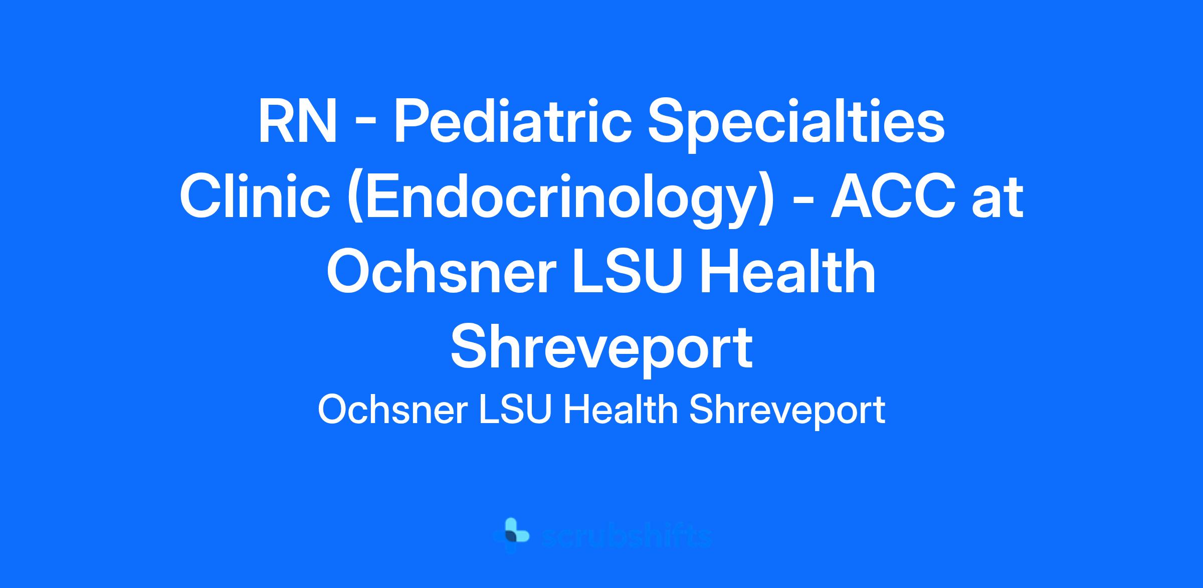 ๐ Apply Direct: https://ochsner.wd1.myworkdayjobs.com/en-US/OchsnerLSUHealthSystemNL/job/Shreveport----North-Louisiana-Region---Louisiana/RN---Pediatric-Specialties-Clinic--Endocrinology----ACC_REQ_00246928
