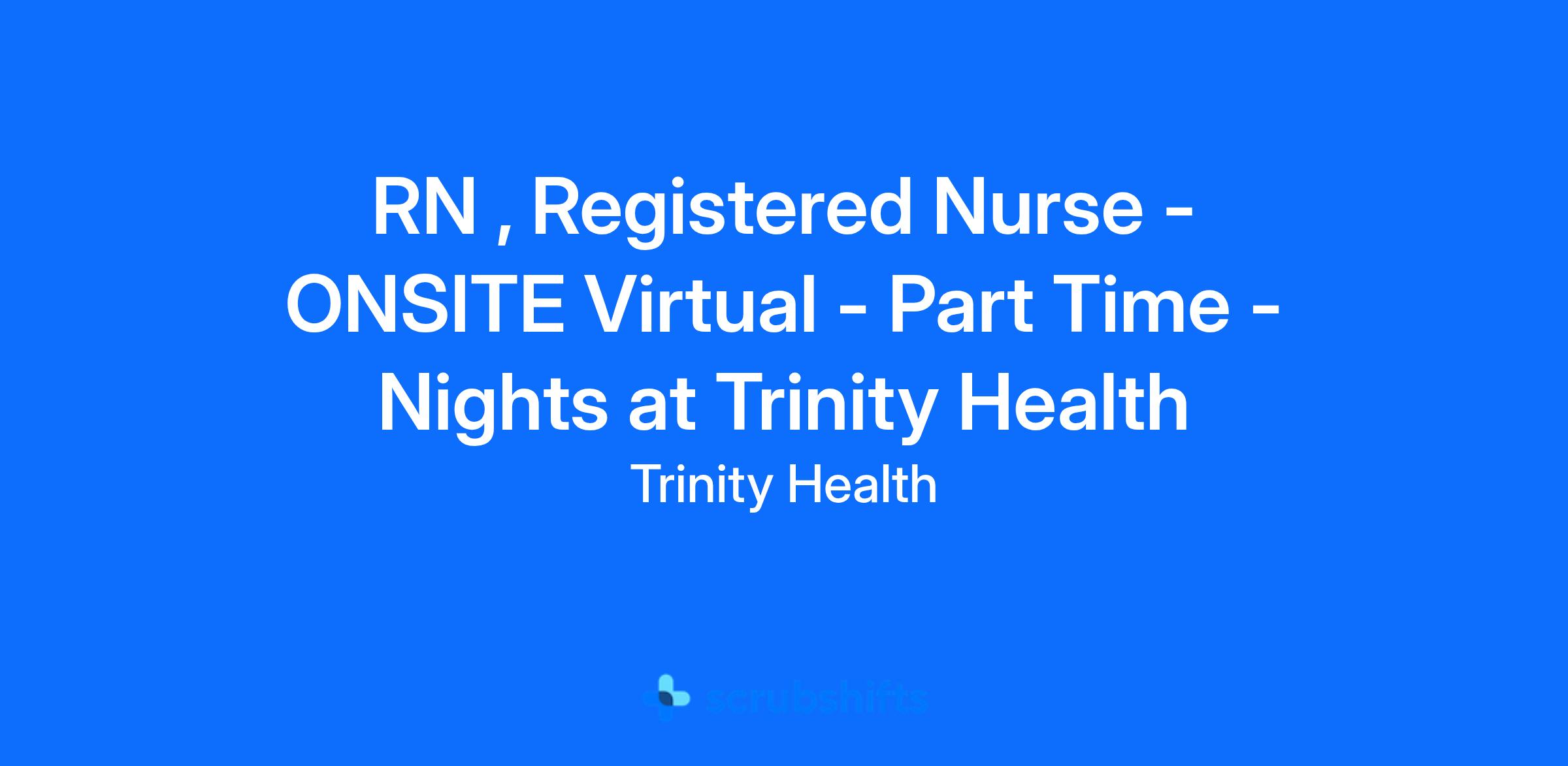 RN , Registered Nurse - ONSITE Virtual - Part Time - Nights at Trinity Health