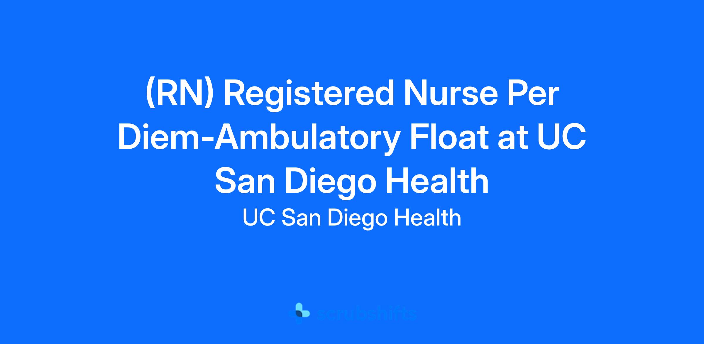 ๐ Apply Direct: https://employment.ucsd.edu/rn-registered-nurse-per-diem-ambulatory-float-137235/job/52C0C7A76CFFB6C3074DC1F0E607122A