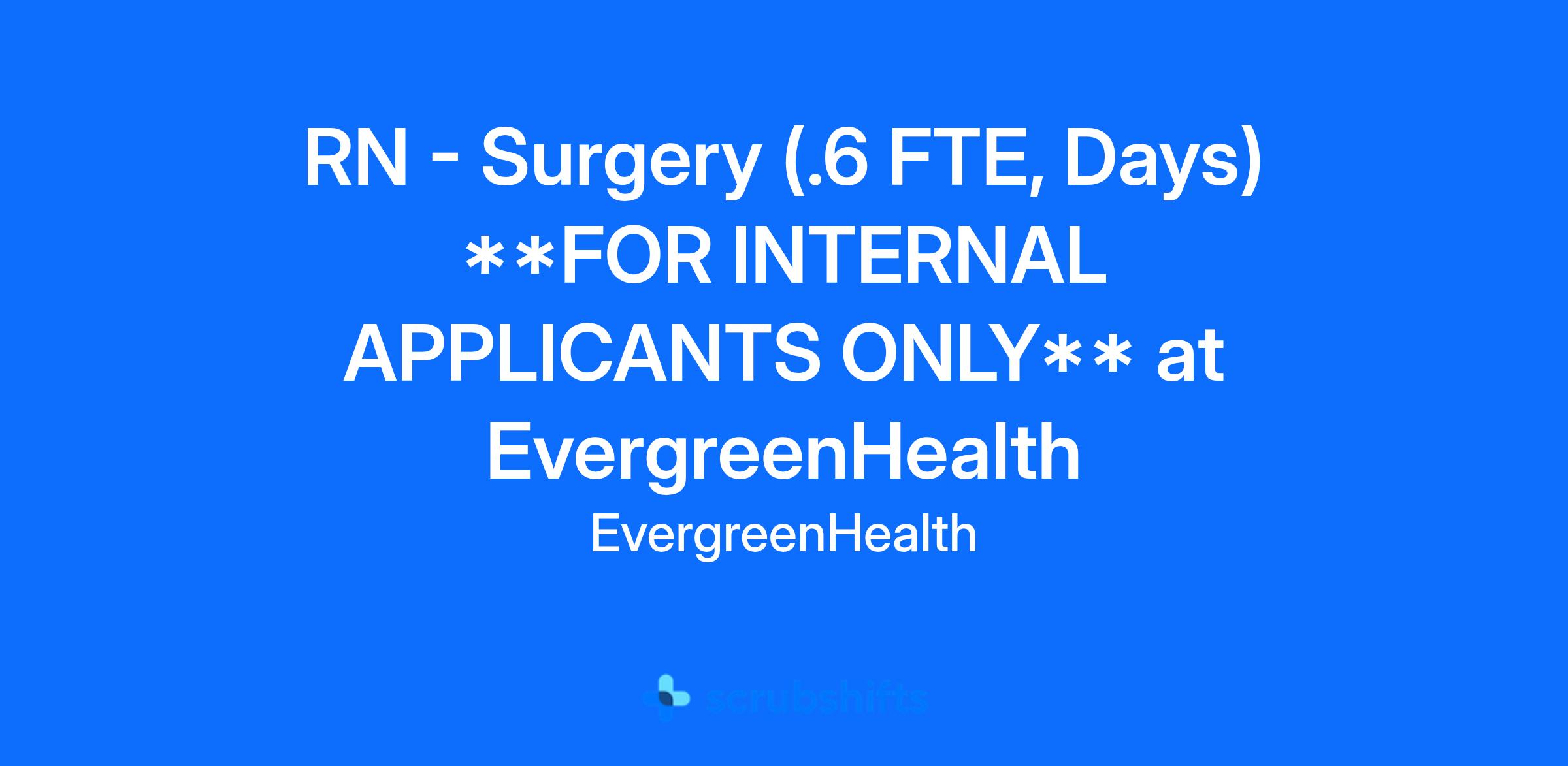 RN - Surgery (.6 FTE, Days) **FOR INTERNAL APPLICANTS ONLY** at EvergreenHealth