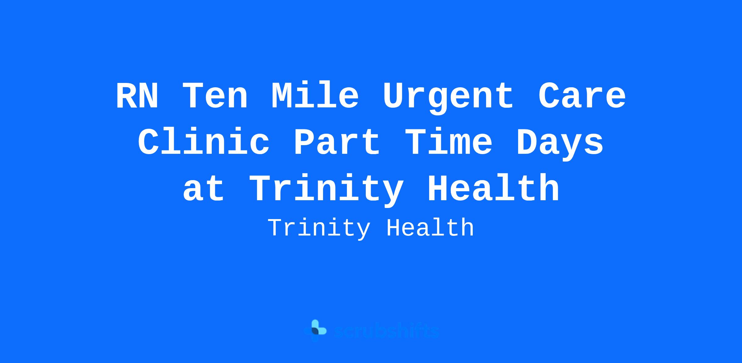 RN Ten Mile Urgent Care Clinic Part Time Days at Trinity Health