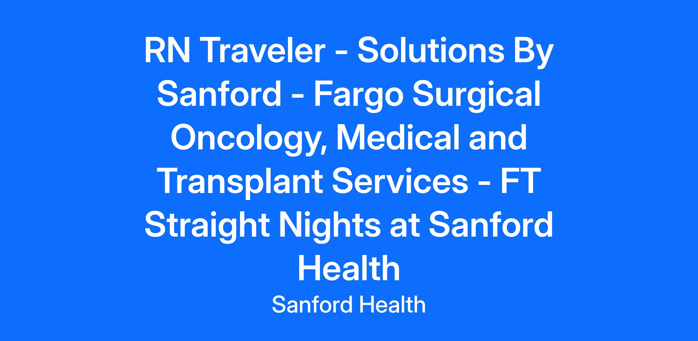 Experienced RNs come join the Solutions By Sanford team!