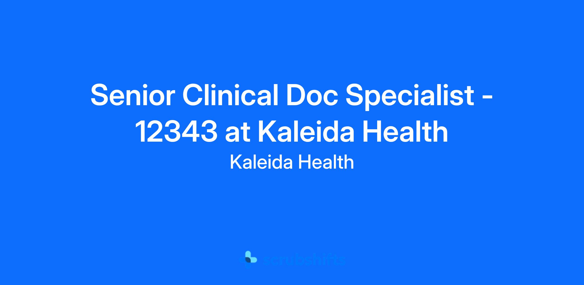 Senior Clinical Doc Specialist - 12343 at Kaleida Health