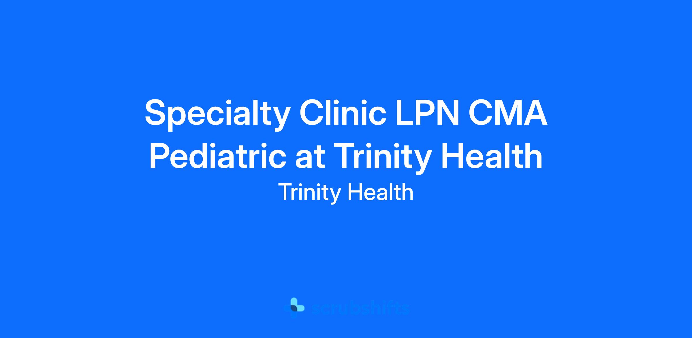 š Apply Direct: https://jobs.trinity-health.org/mercyone/job/TRHEUS00621872MERCYONEENUS/Specialty-Clinic-LPN-CMA-Pediatric?utm_source=indeed&utm_medium=phenom-feeds