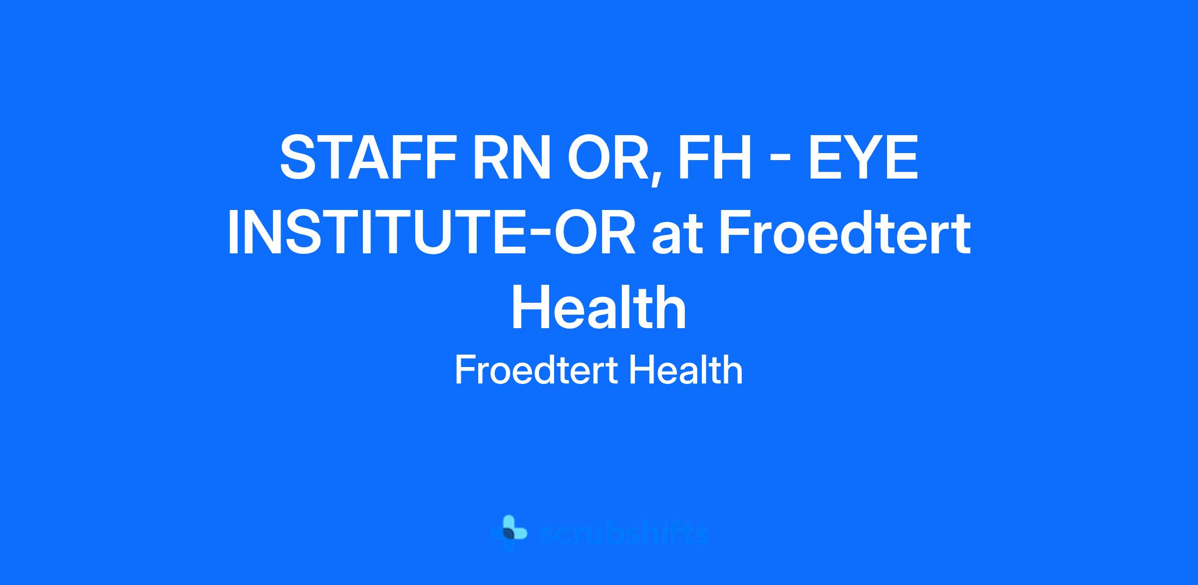 š Apply Direct: https://jobs.froedtert.com/job/153843/STAFF-RN-OR-FH-EYE-INSTITUTE-OR
