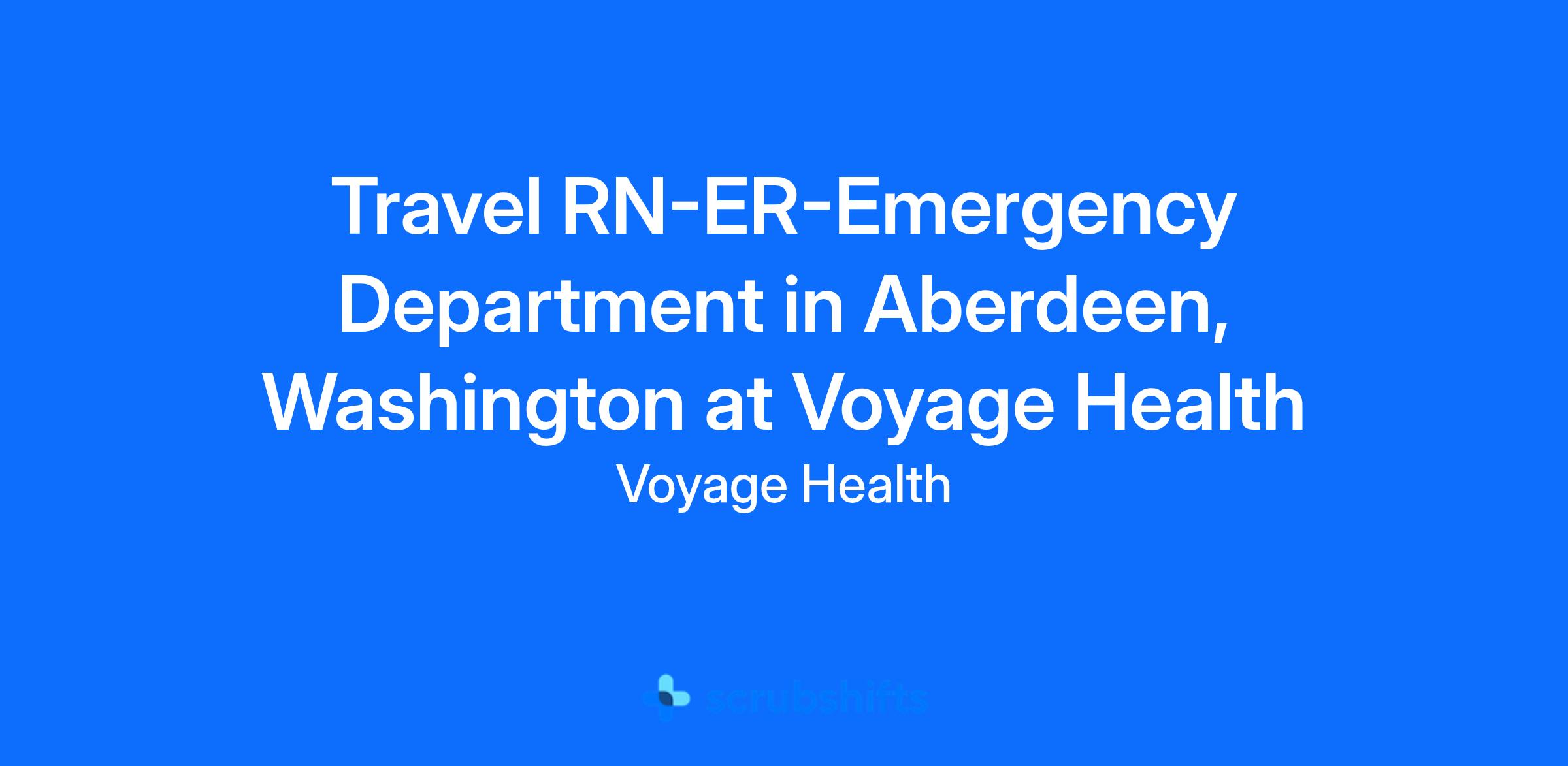 We're hiring experienced RN\\-ER\\-Emergency Department for a 13\\-week contract in Aberdeen, Washington β earn up to ($2256 \\- $2375 per week) while providing essential care at a leading facility. Most candidates will need to have at least 2 years of recent experience in the specialty.