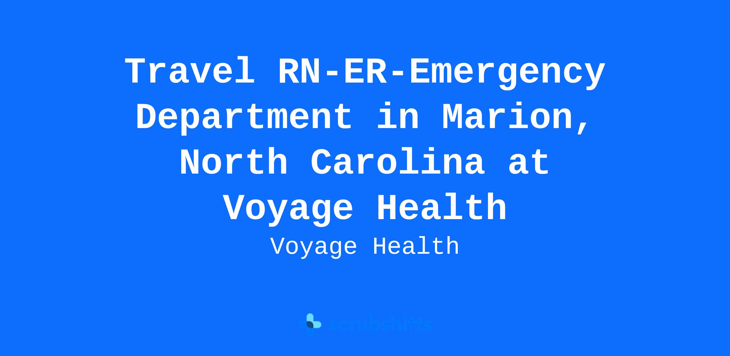 We're hiring experienced RN\\-ER\\-Emergency Department for a 13\\-week contract in Marion, North Carolina β earn up to ($1748 \\- $1840 per week) while providing essential care at a leading facility. Most candidates will need to have at least 2 years of recent experience in the specialty.