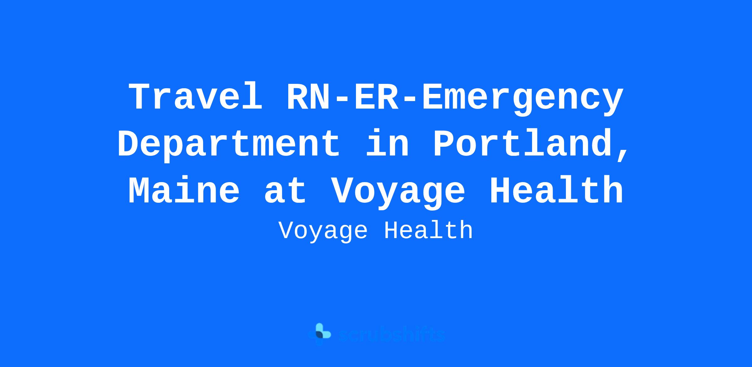 We're hiring experienced RN\\-ER\\-Emergency Department for a 13\\-week contract in Portland, Maine β earn up to ($2238 \\- $2356 per week) while providing essential care at a leading facility. Most candidates will need to have at least 2 years of recent experience in the specialty.