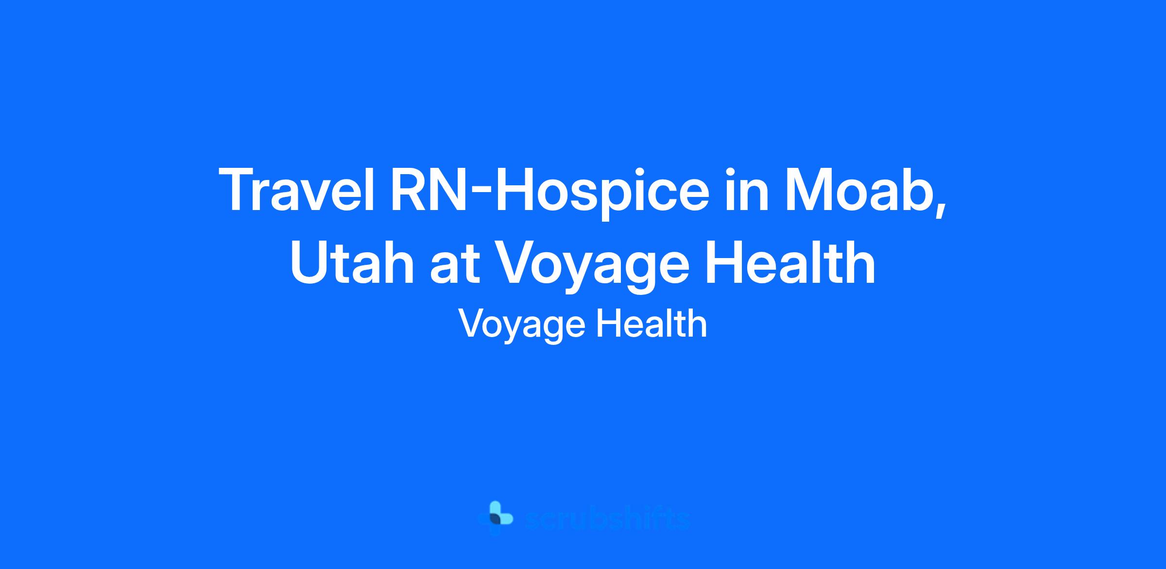 We're hiring experienced RN\\-Hospice for a 13\\-week contract in Moab, Utah β earn up to ($2151 \\- $2265 per week) while providing essential care at a leading facility. Most candidates will need to have at least 2 years of recent experience in the specialty.